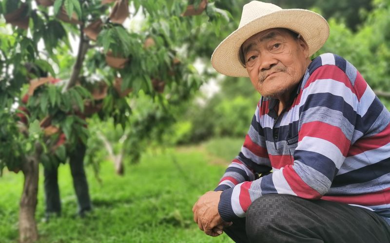 邢爱国家种了二十多年桃了。从他父亲开始,就承包了这片地,栽上了桃树。二十多年过去,300多棵桃树换了两茬。父亲老了,邢爱国接过了桃园。