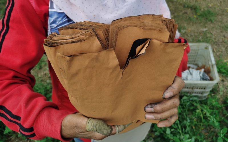 国内给生长中的水果套袋,起源于上世纪末,司鹏说,“这种方法最初是从日本引进了,对一些水果的病虫害防治有利,能够很大程度上降低病虫害发生”。